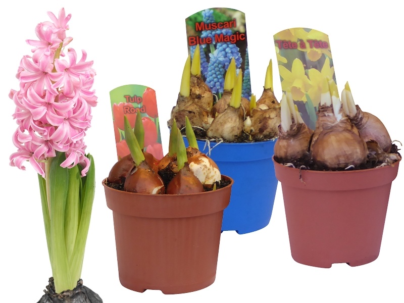Voorjaarsbloeiers zoals Narcissen, blauwe druifjes, tulpen en Hyacinten combineren schitterend door hun vele kleuren. Ook door de hoogteverschillen gaan deze bolgewassen mooi samen. Breng het voorjaar in huis!
