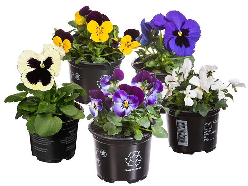 Er bestaan ruim 400 verschillende soorten violen in allerlei kleurschakeringen. De grootbloemige F1-Hybriden (Viola F1) zijn door de manier waarop ze zijn gekweekt sterk en gelijkvormig. De bloemen vallen extra op, bedekken bijna het onderliggende groen en zien er mooi en evenwichtig uit. De kleinbloemige Viola cornuta is wintergroen en een natuurlijk en verfijnd ogend viooltje. Als bonus is dit plantje ook nog meerjarig. Met beide soorten violen heb je alles in huis om extra uitbundig de lente te starten.